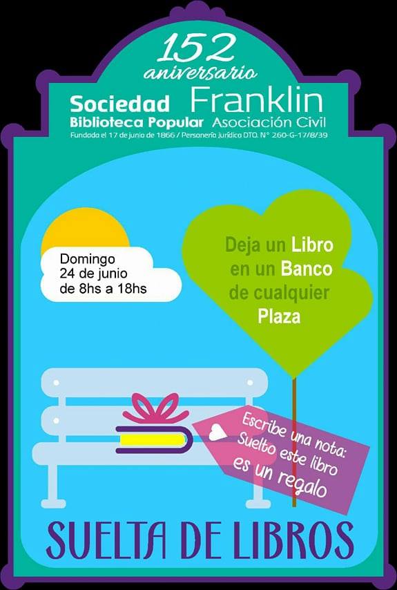 La Biblioteca Franklin te propone: Regala un libro Déjalo en un banco de cualquier plaza Escribe una nota que diga “Suelto el libro”, para el que lo Leer más …
